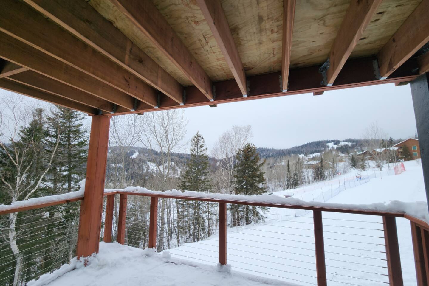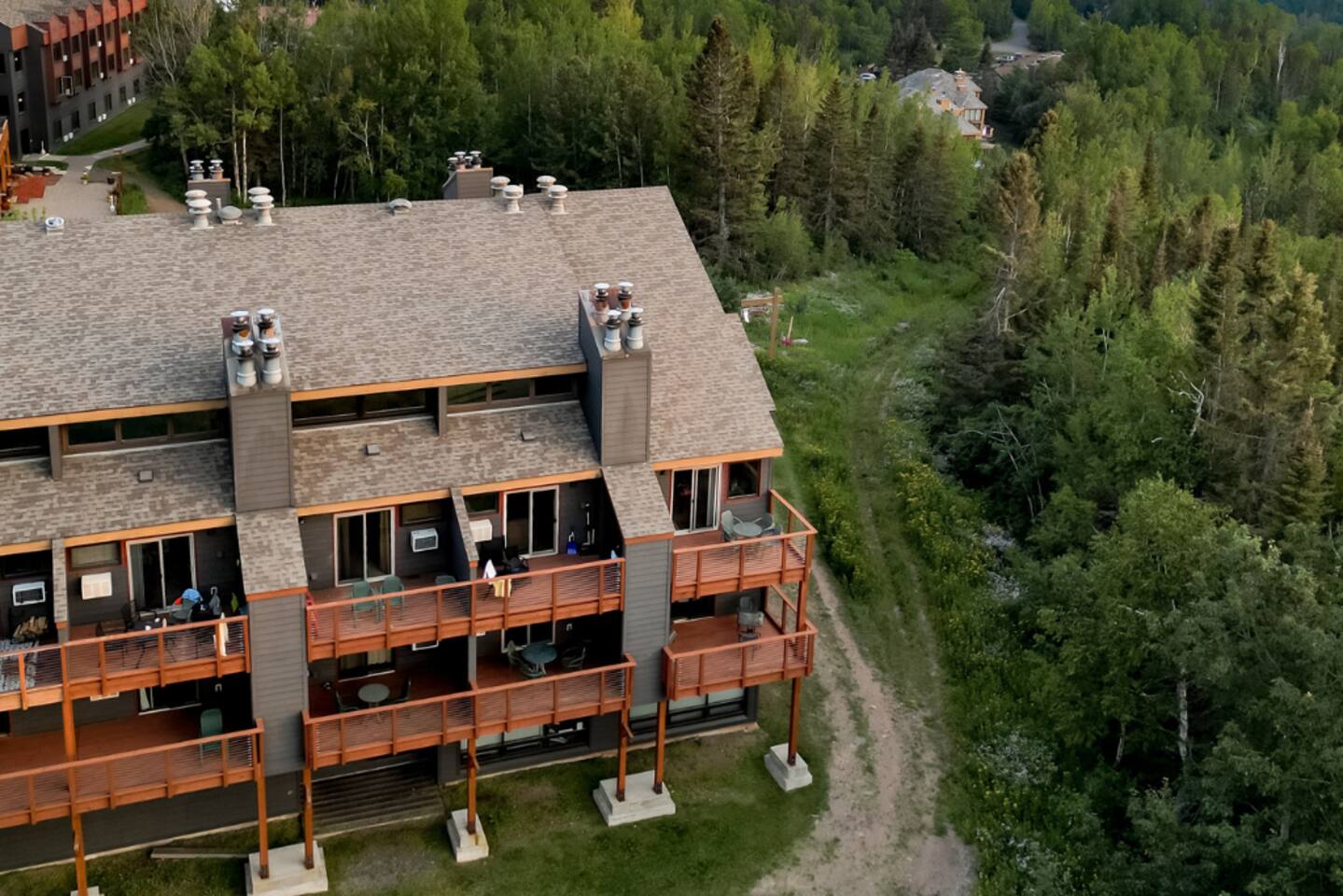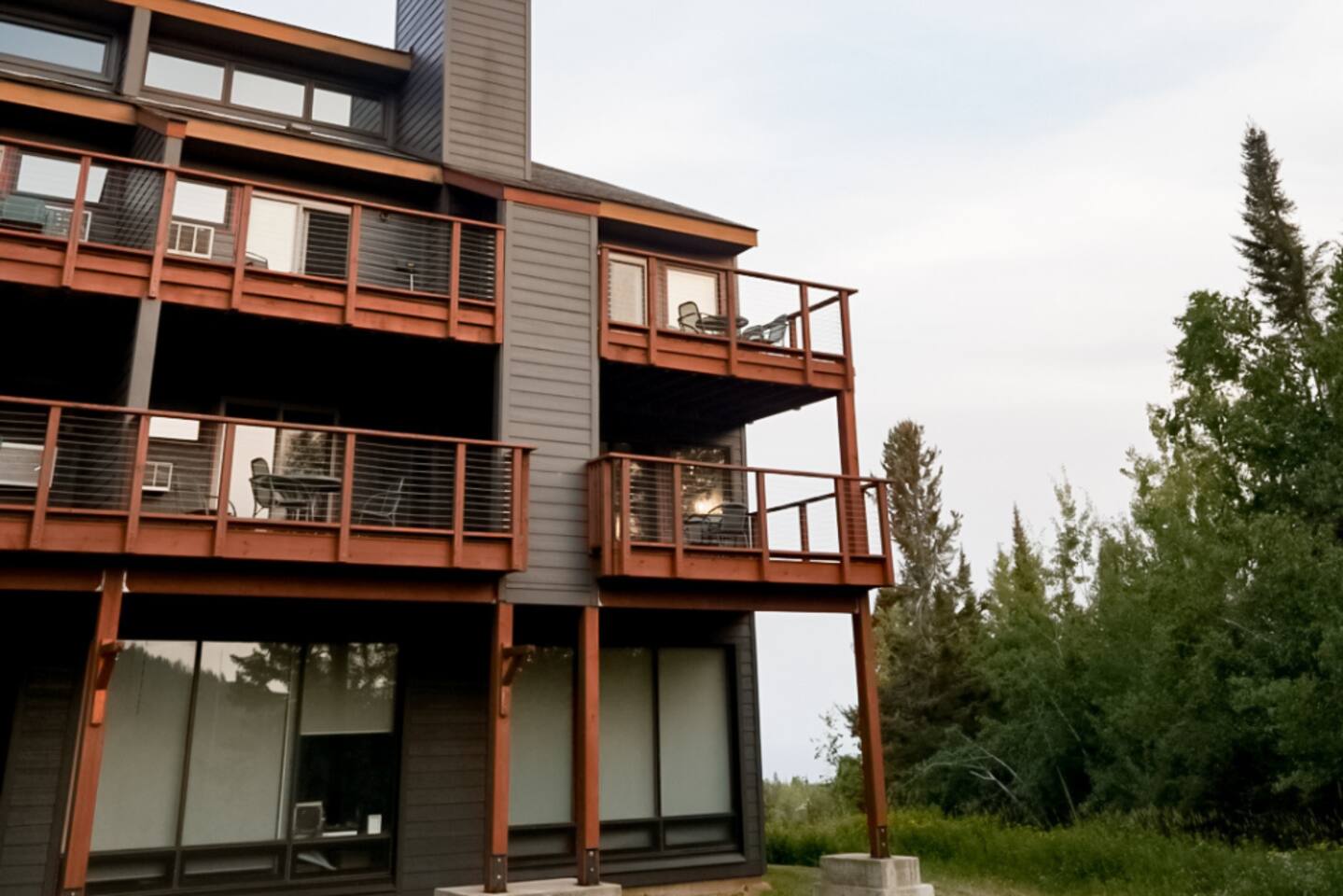 This Condo is in the Caribou Highlands ski resort located in Lutsen, MN. Being an end-unit condo means there is only one condo above and one to the side of our condo. You also have access to most of the resort amenities, such as the pool, hot tub, and fitness room.