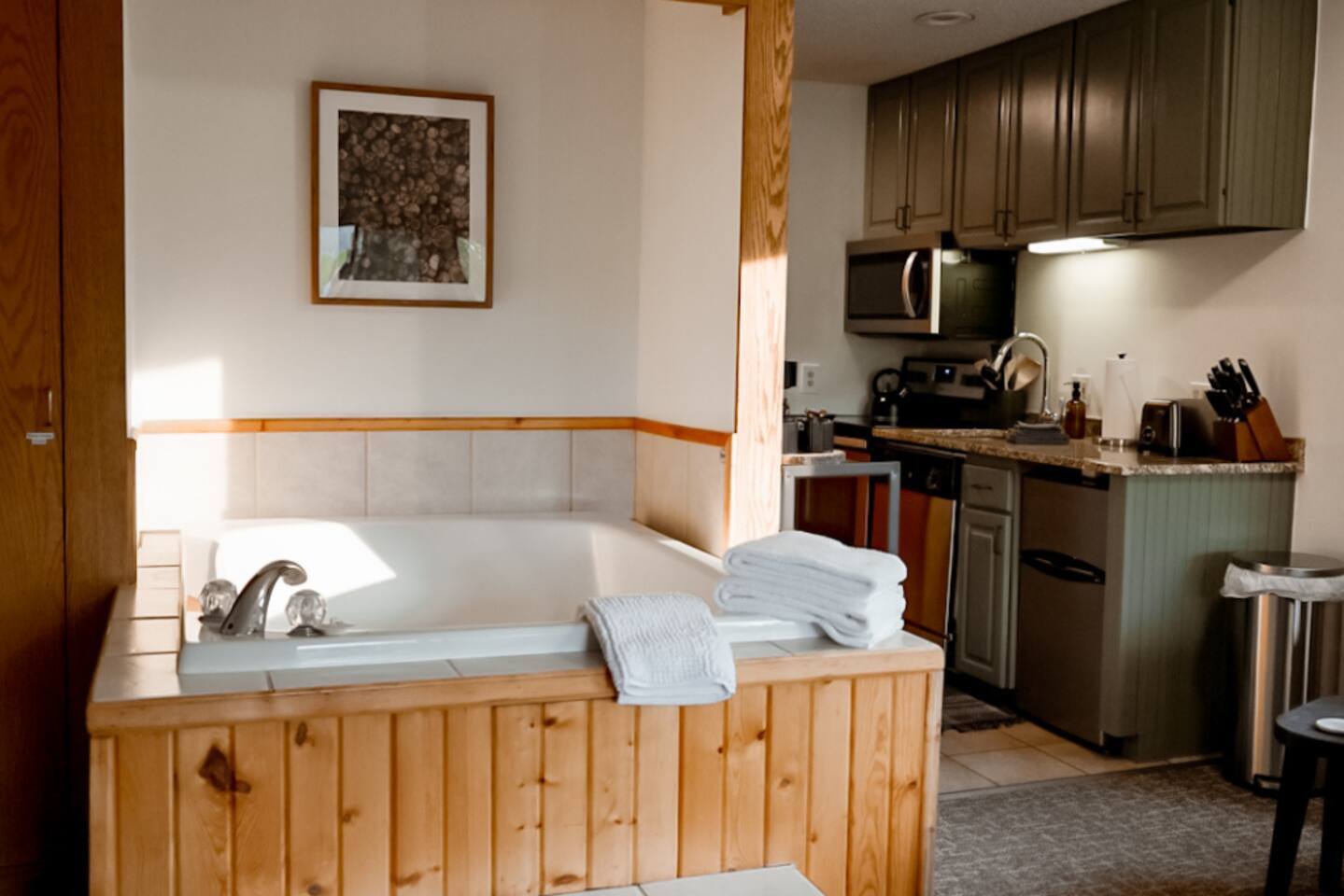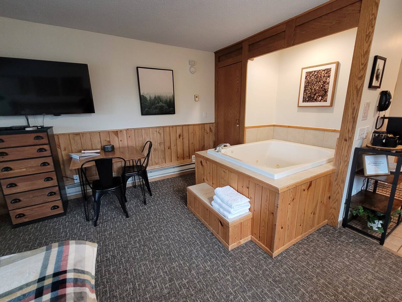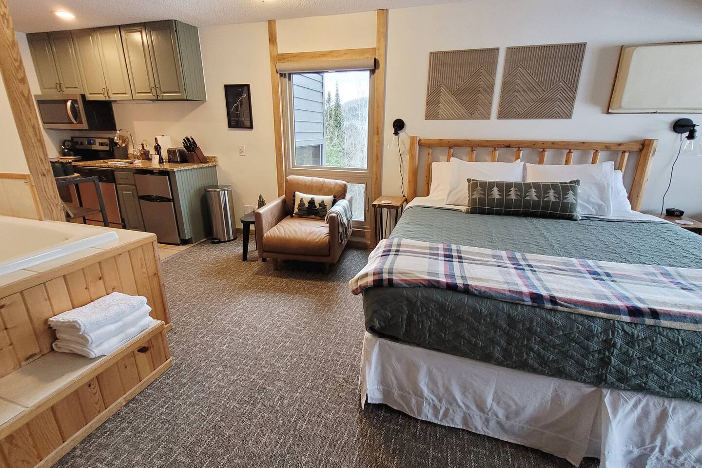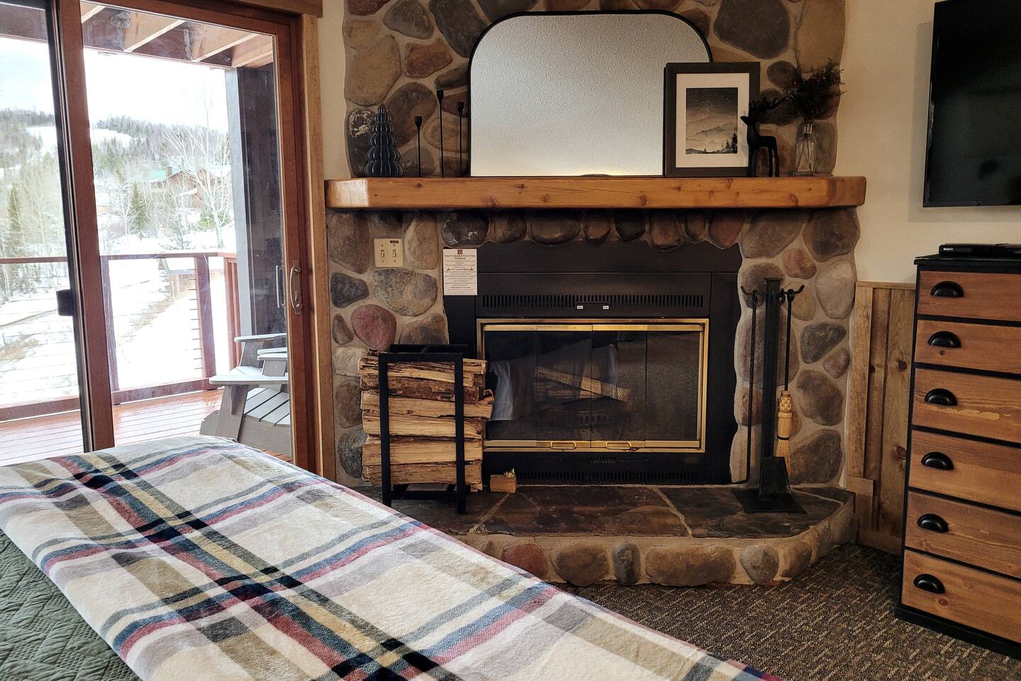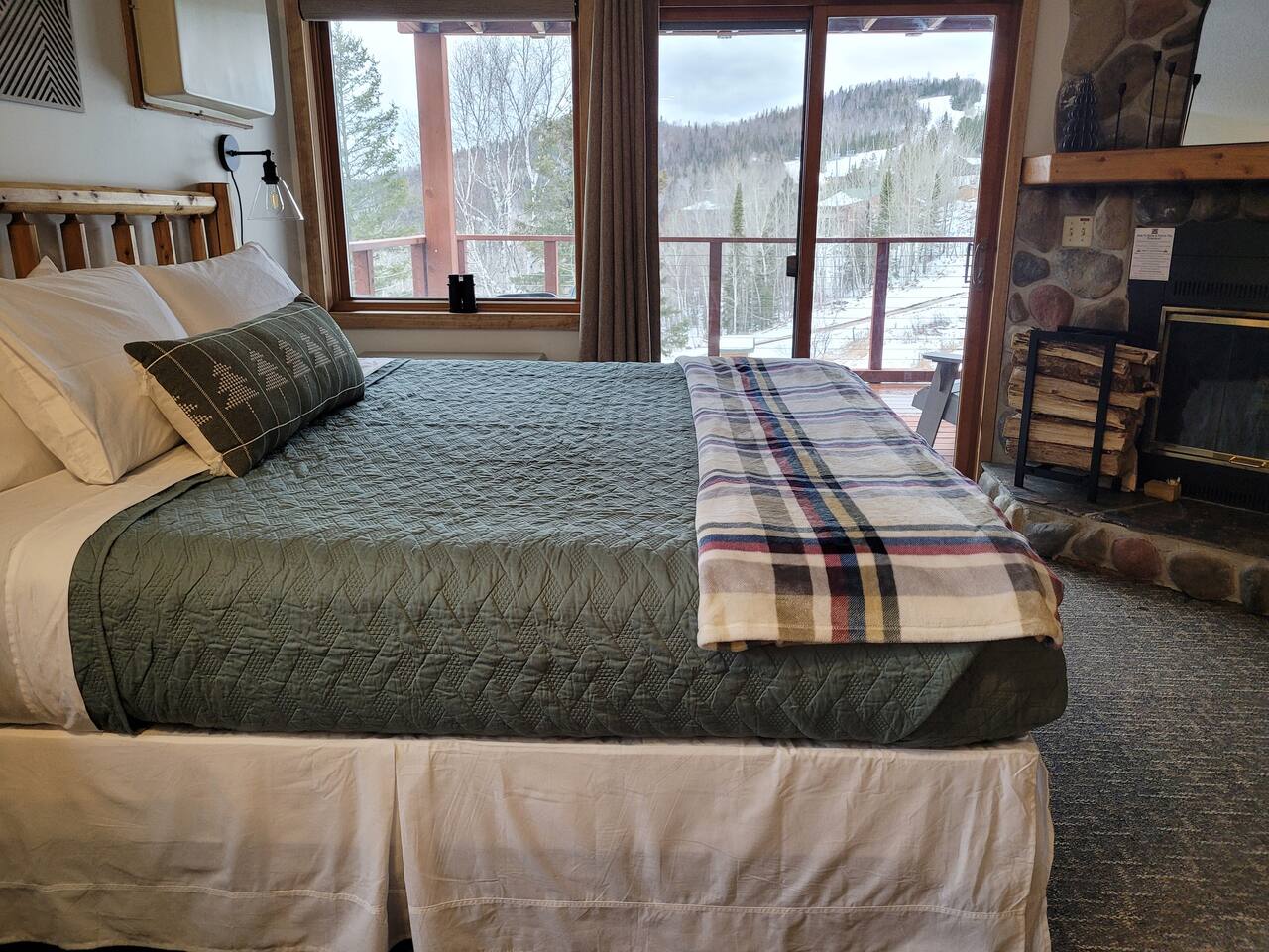 Experience the ultimate North Shore getaway in our cozy studio condo with direct ski-in/ski-out access! This charming retreat features a king-size bed with fresh linens, a full bathroom with a jacuzzi tub for two, a fully equipped kitchen with mini-fridge, and a wood-burning fireplace—perfect for relaxing after a day on the slopes. Step out onto your private deck and take in breathtaking views of Eagle Mountain and Lake Superior. You’re just a short walk to the Lutsen Gondola and Charlie’s Alpine Bistro, as well as the indoor pool, hot tub, Moguls Grille, and Tap Room. Whether you’re skiing, exploring, or simply unwinding, this condo has everything you need for a romantic couples getaway. Enjoy a one-of-a-kind mountain retreat! Ski-In/Ski-Out: Moose access runs under the corner of our deck for easy access to Lusten Mountain. No Pets: Please note that no pets are allowed to ensure an allergen-free environment for all guests. Parking: There is one designated parking spot for this unit.